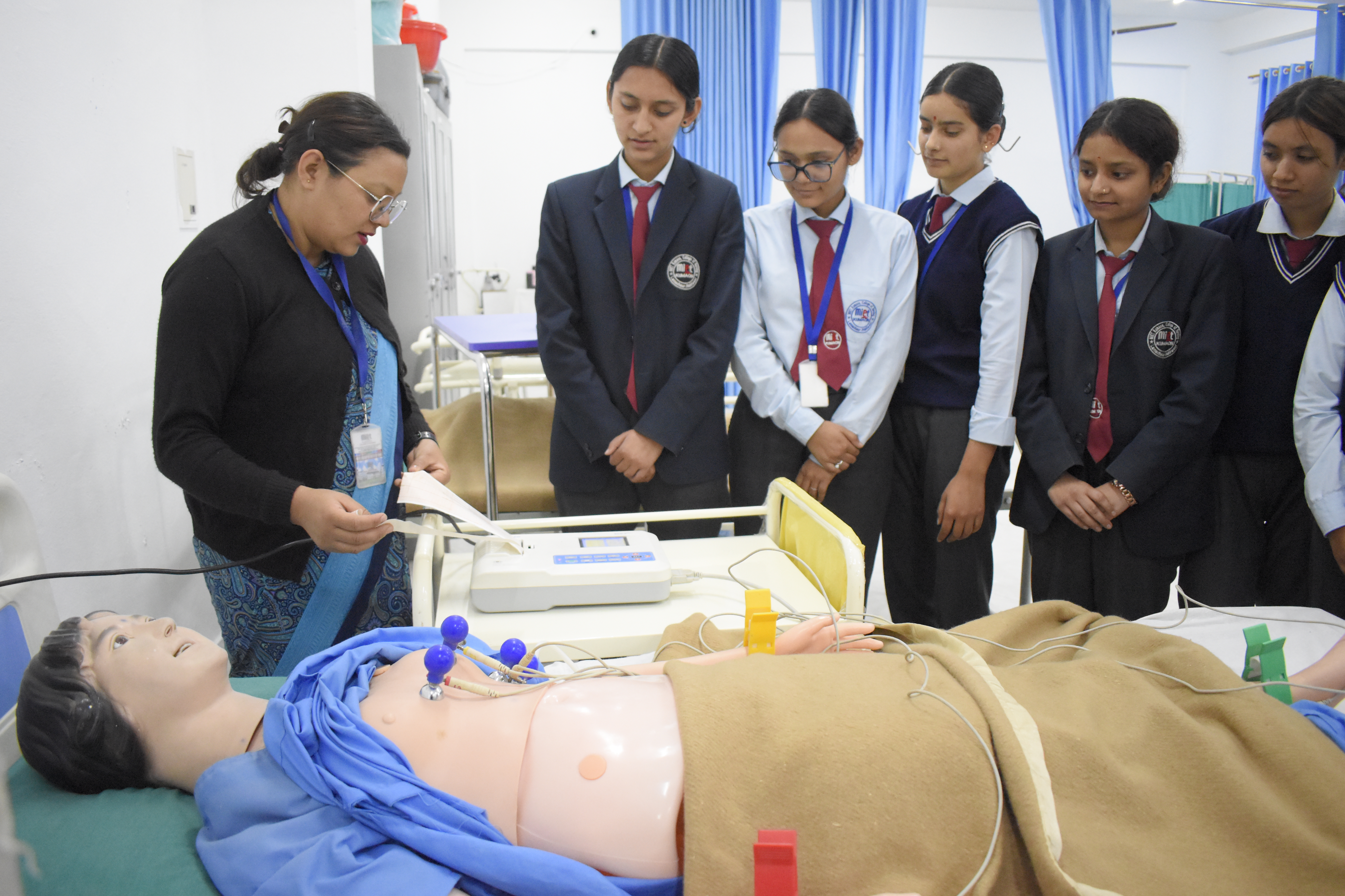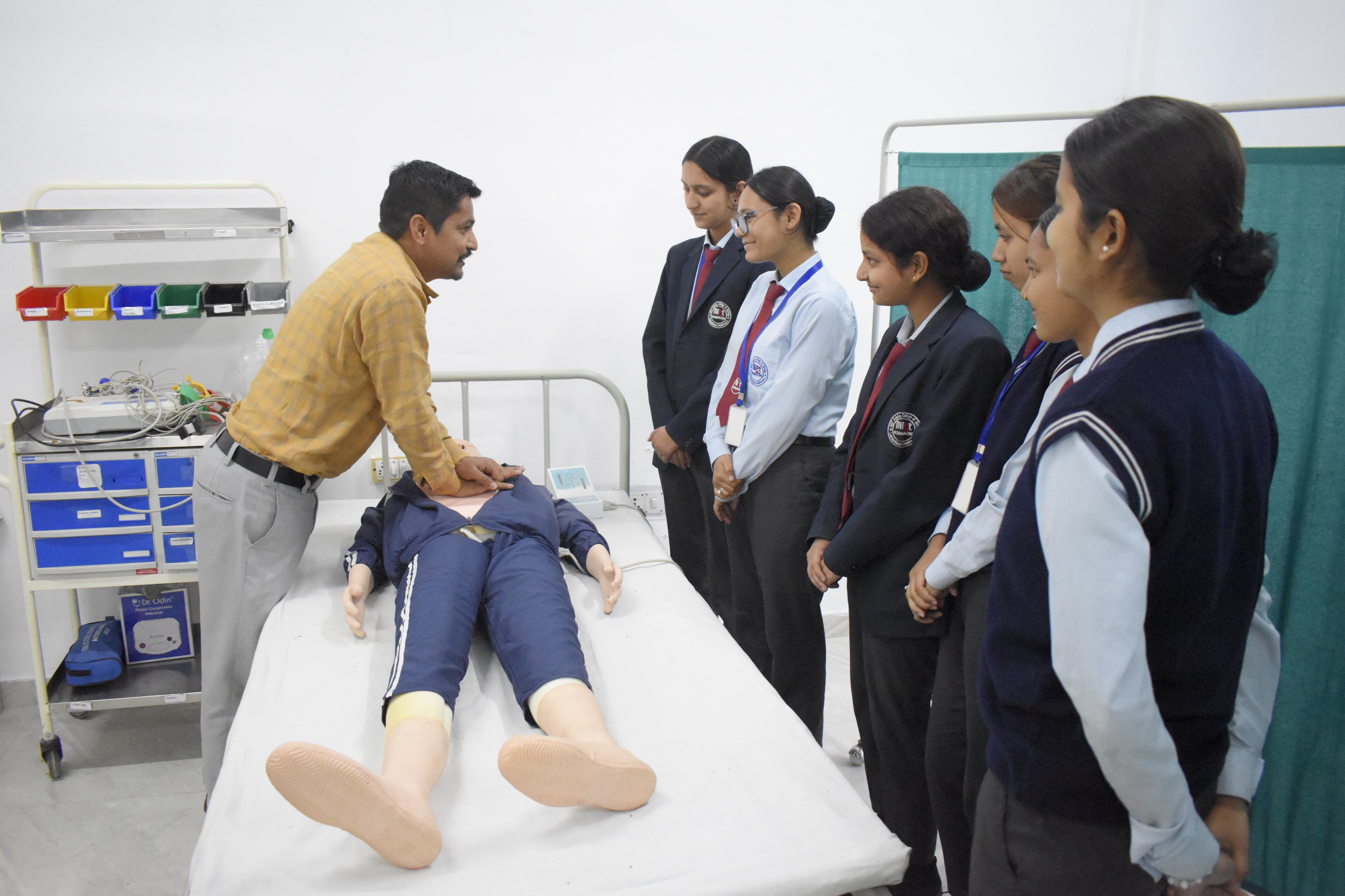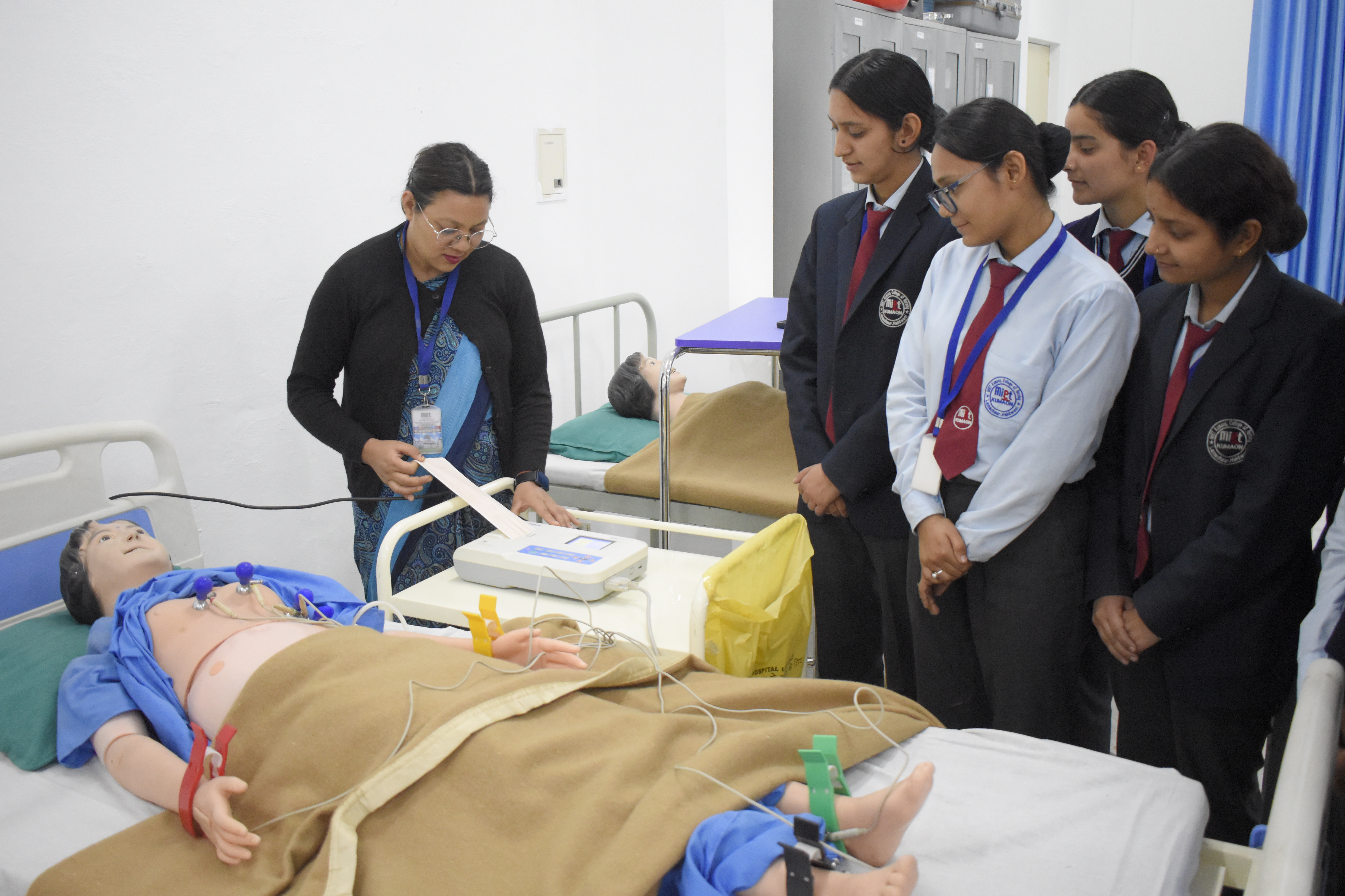 At MIET Kumaon College of Nursing, practical learning is an important part of nursing education. The college has well-equipped laboratories where students can learn and practice different nursing procedures before performing them in real hospital settings. Our laboratories provide a safe and supportive environment for students to develop essential clinical skills. With the help of models, simulators, and modern medical equipment, students are trained to understand patient care, nursing techniques, and clinical procedures under the guidance of experienced faculty members. Practical sessions in the labs help students build confidence and improve their skills. These training facilities follow the guidelines and standards of the Indian Nursing Council (INC) and the affiliated university to ensure quality nursing education.