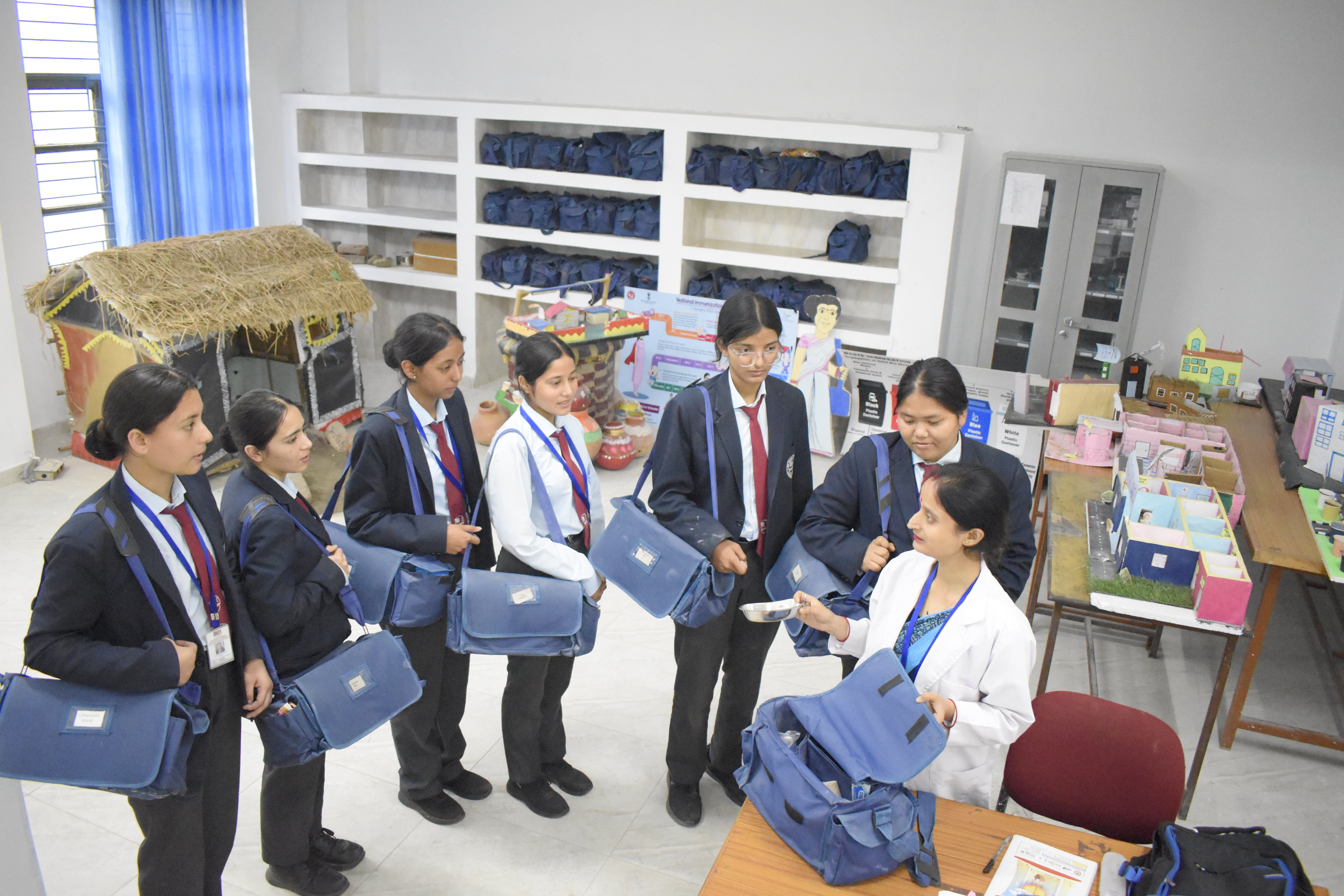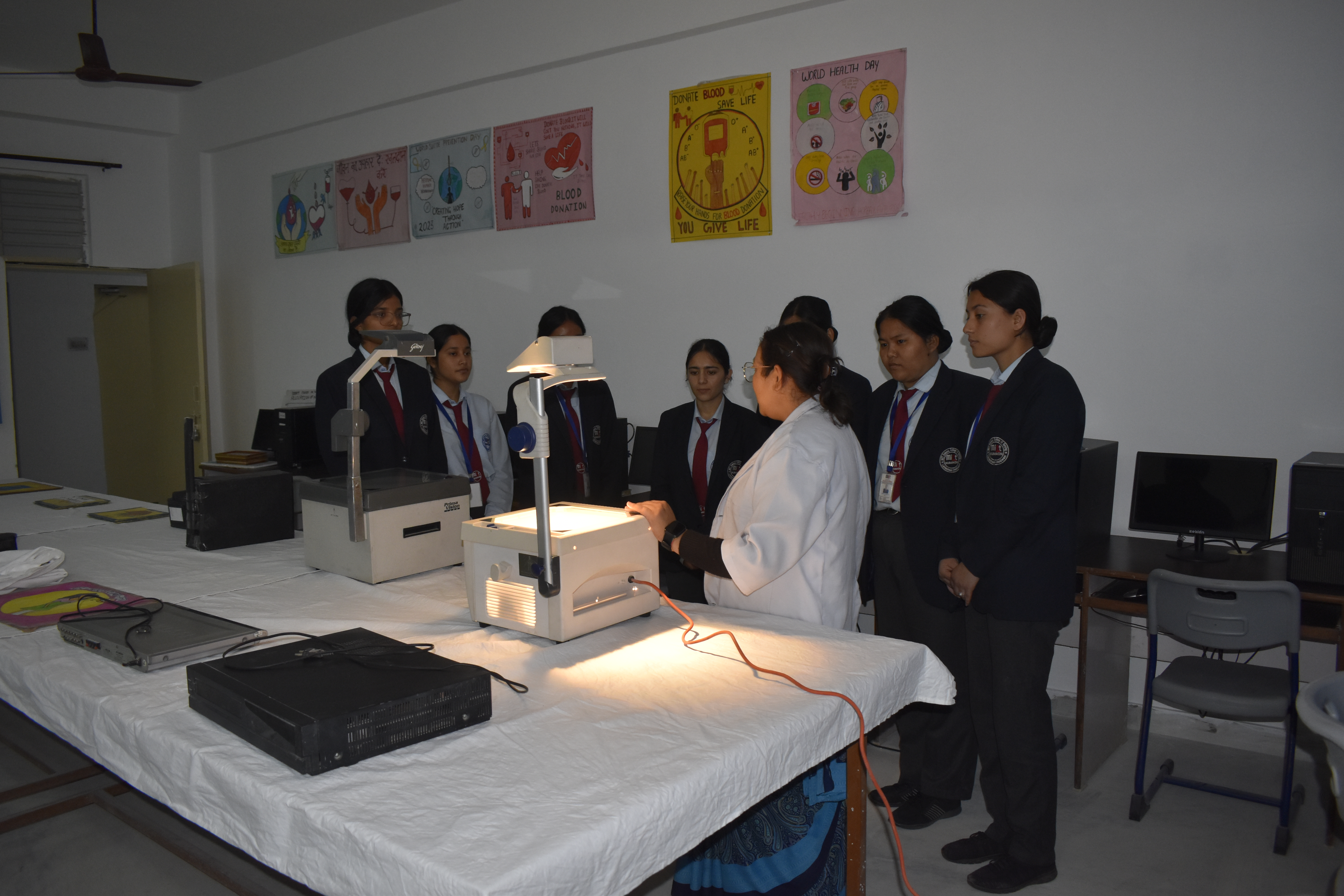 Students learn how to prepare and use educational materials for health awareness programs, classroom teaching, and community health education. The lab encourages creativity, confidence, and effective knowledge sharing using modern teaching technologies.